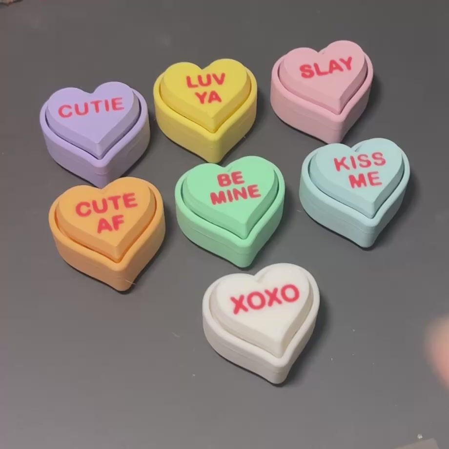 Celebrate love and fun with Conversation Heart Clickers! These adorable clickers display playful and sassy messages such as "BE MINE" and "CUTE AF." Perfect for Valentine's Day or any day, these clickers make a cute and unique accessory. Spread love and laughter with our Conversation Heart Clickers.